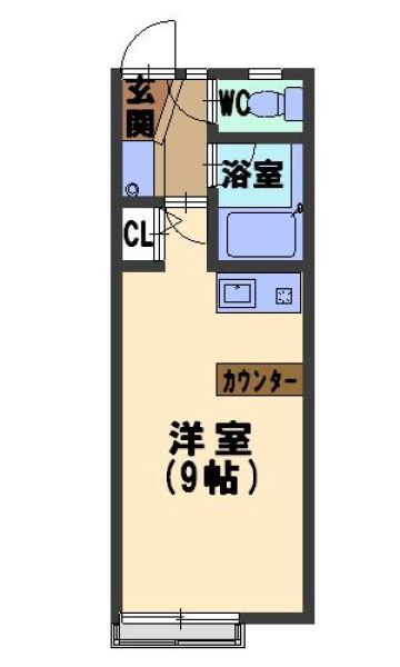 ひろびろ洋室9帖。お風呂・トイレ別・室内洗濯置き場。
